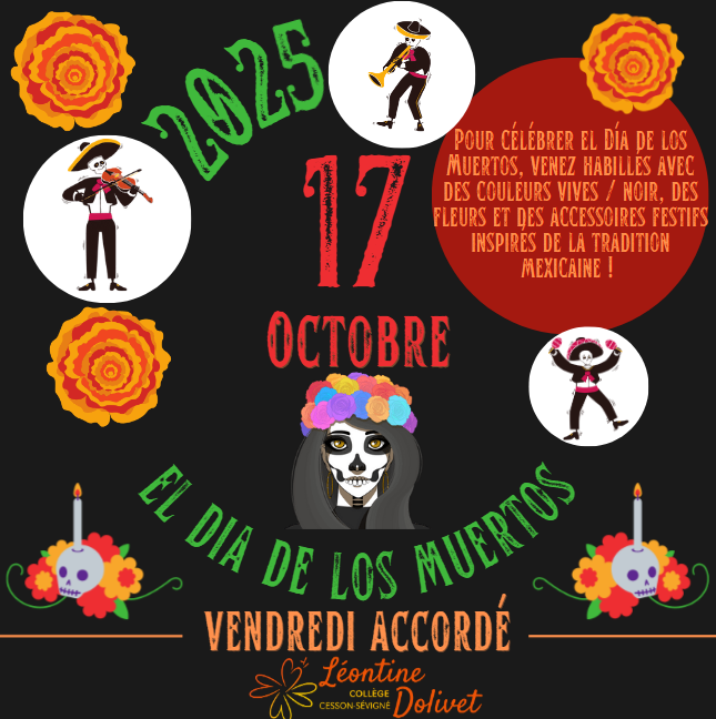 Vendredi 17 octobre 2025, le collège se pare de mille couleurs pour célébrer le célèbre Día de los Muertos, la fête mexicaine.