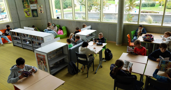 – Un lieu de lecture où les élèves peuvent lire et emprunter divers types de documents comme dans une bibliothèque : romans, documentaires, pièces de théâtre, recueils de poésie, contes, bandes dessinées, mangas, magazines…