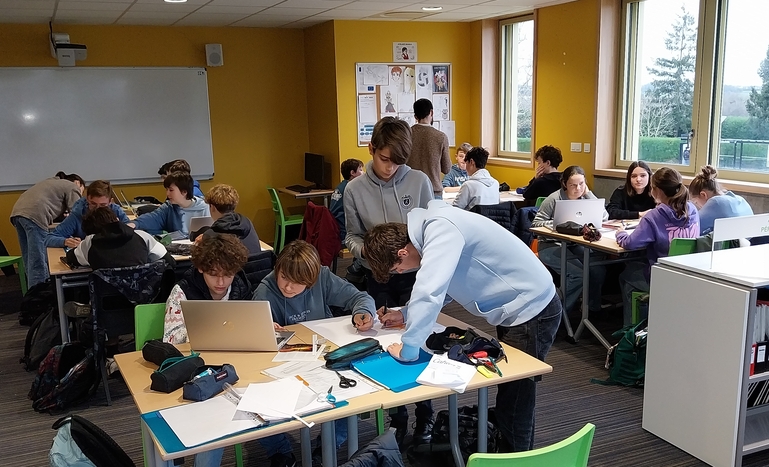 – Un lieu de travail pendant les heures d’étude où sont mises à disposition des ressources documentaires variées et des outils informatiques. La professeure documentaliste est à la disposition des élèves pour les aider et les former dans leurs recherches.