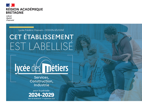 Le Lycée Frédéric OZANAM est labellisé « Lycée des Métiers » pour l’ensemble de ses formations professionnelles et supérieurs. Ce label, renouvelé en 2024 est attribué pour 5 ans par l’académie de Rennes et met en évidence :